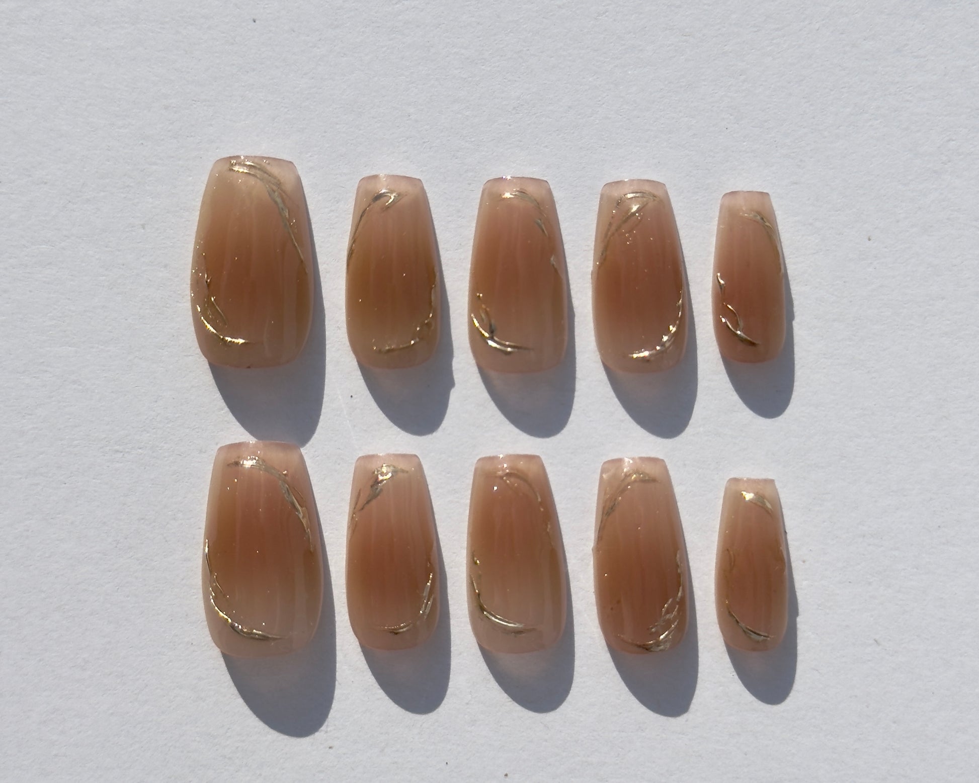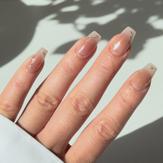 Apply glue to your press-ons and your natural nail. Press firmly for 30 seconds per nail with pressure to ensure full adhesion.
