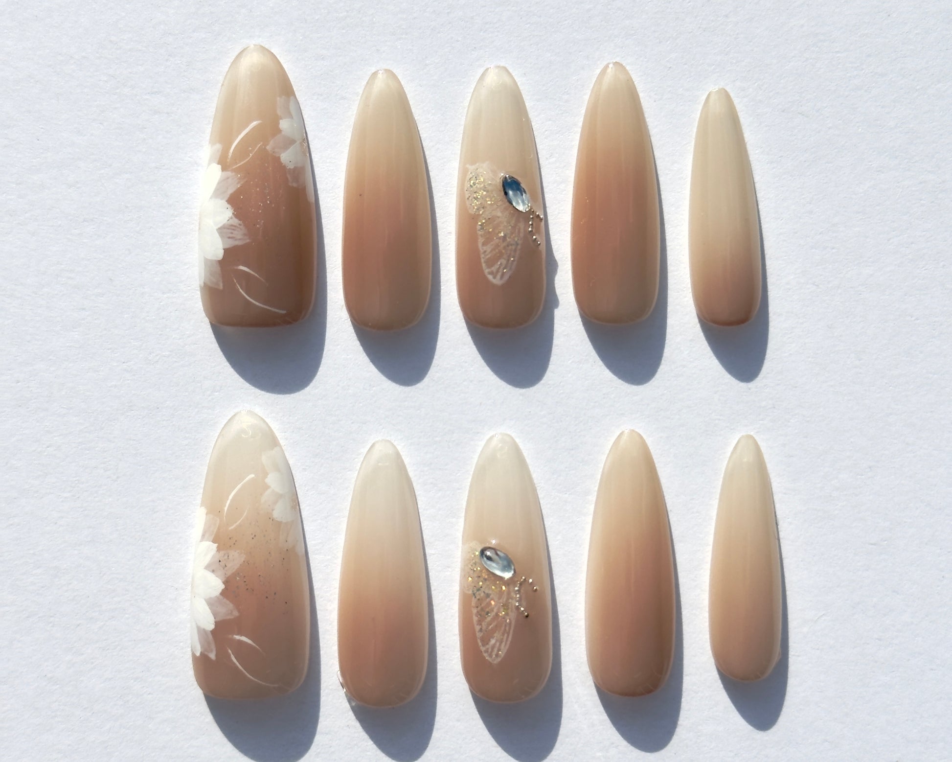 Apply glue to your press-ons and your natural nail. Press firmly for 30 seconds per nail with pressure to ensure full adhesion.