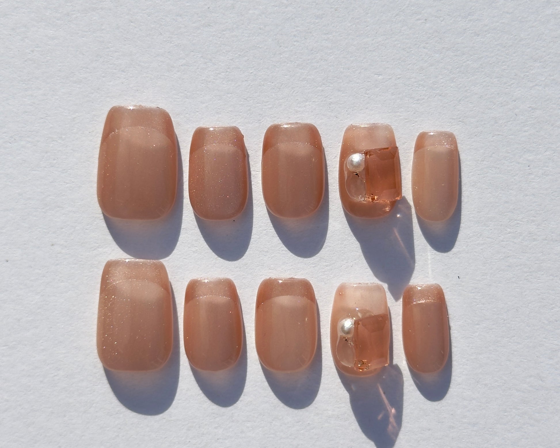 Apply glue to your press-ons and your natural nail. Press firmly for 30 seconds per nail with pressure to ensure full adhesion.