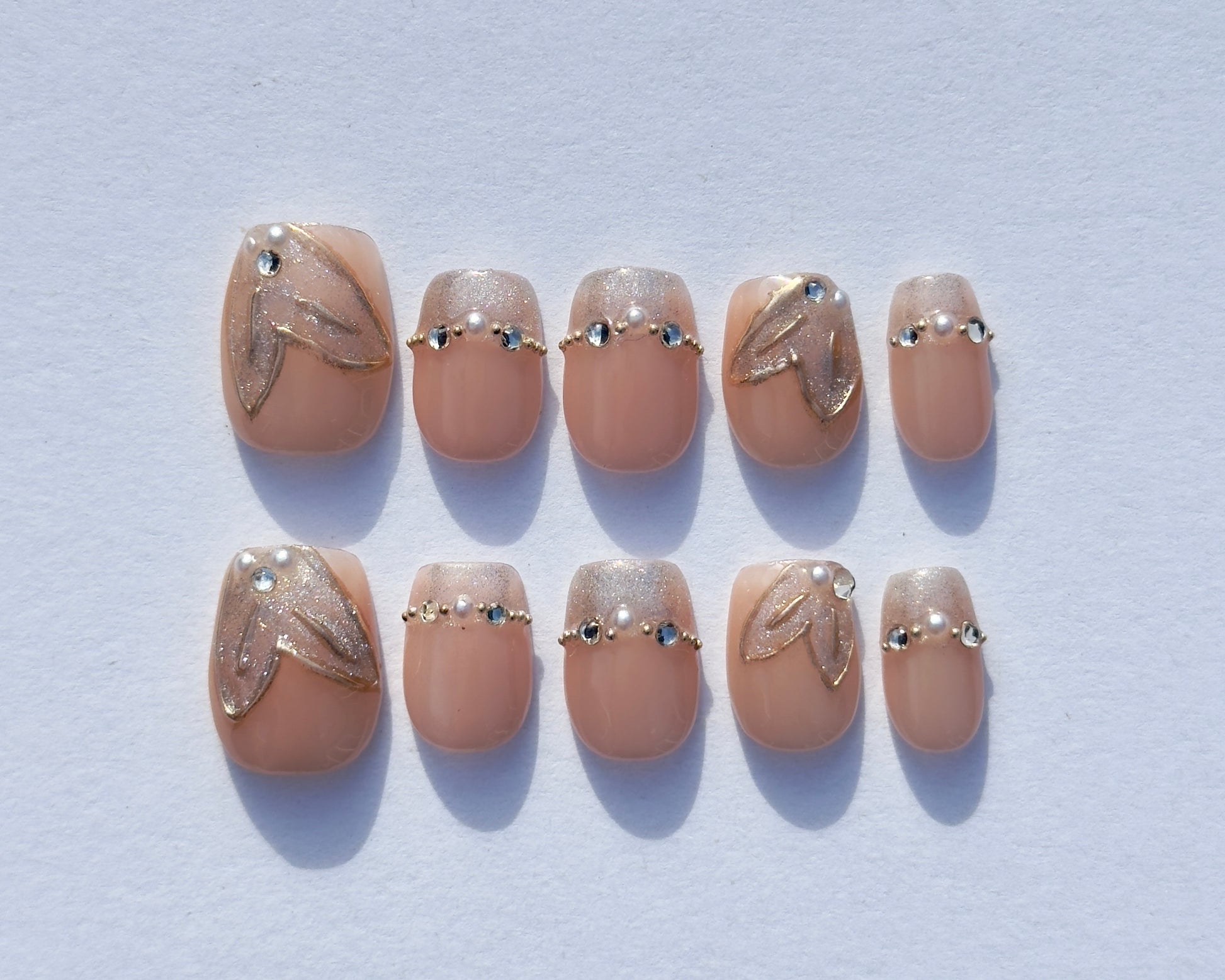 Apply glue to your press-ons and your natural nail. Press firmly for 30 seconds per nail with pressure to ensure full adhesion.