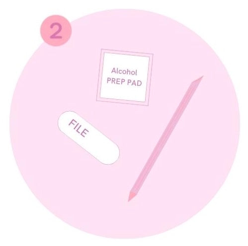 Push cuticles back with the wooden stick. File, Buff and Wipe nails.
