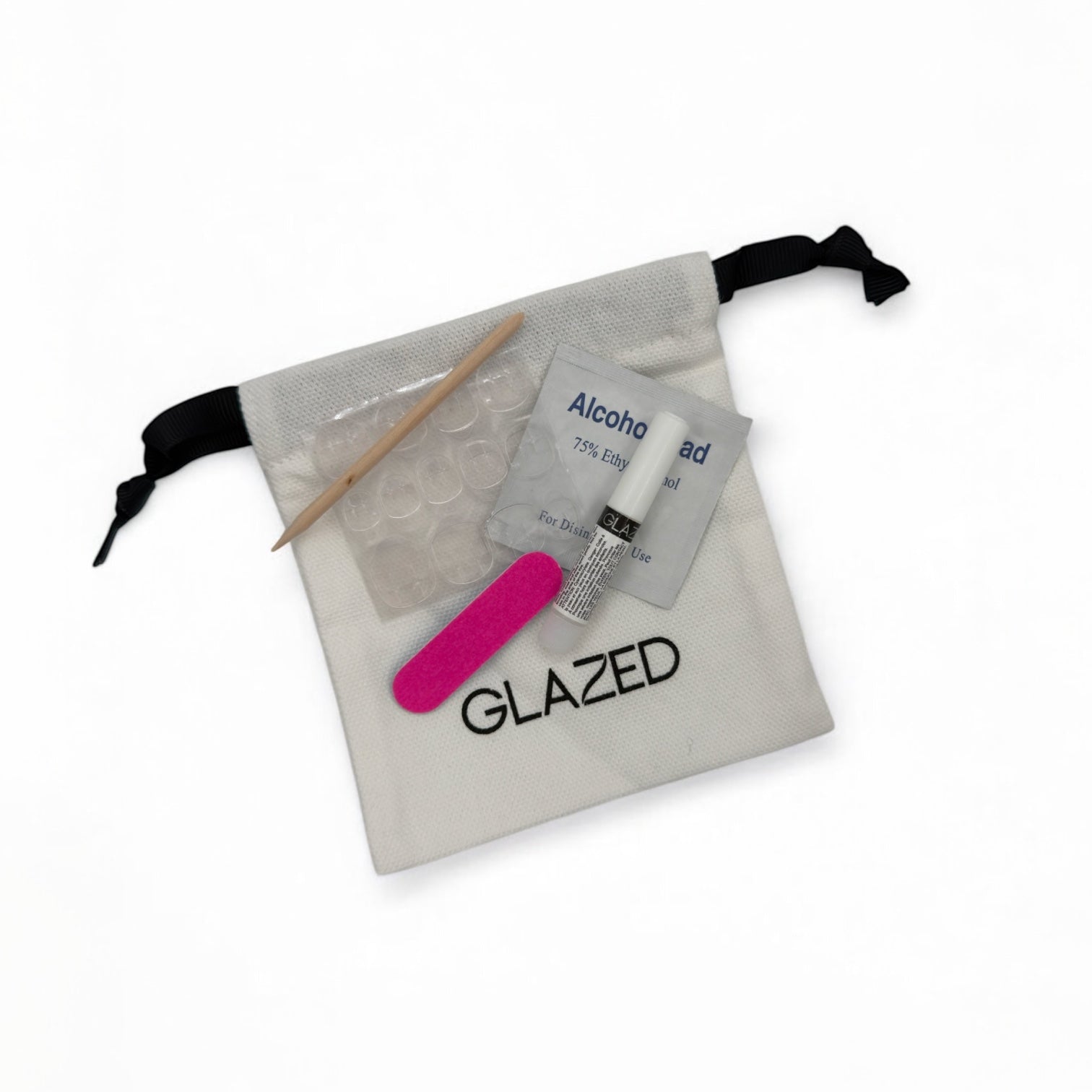 To remove your Glazed press-ons, soak your nails in warm water with soap and any oil for 15 minutes. Once you begin to feel the glue soften, use the wooden stick tool provided to get leverage between the nail and the press-ons and pop the press-ons off.