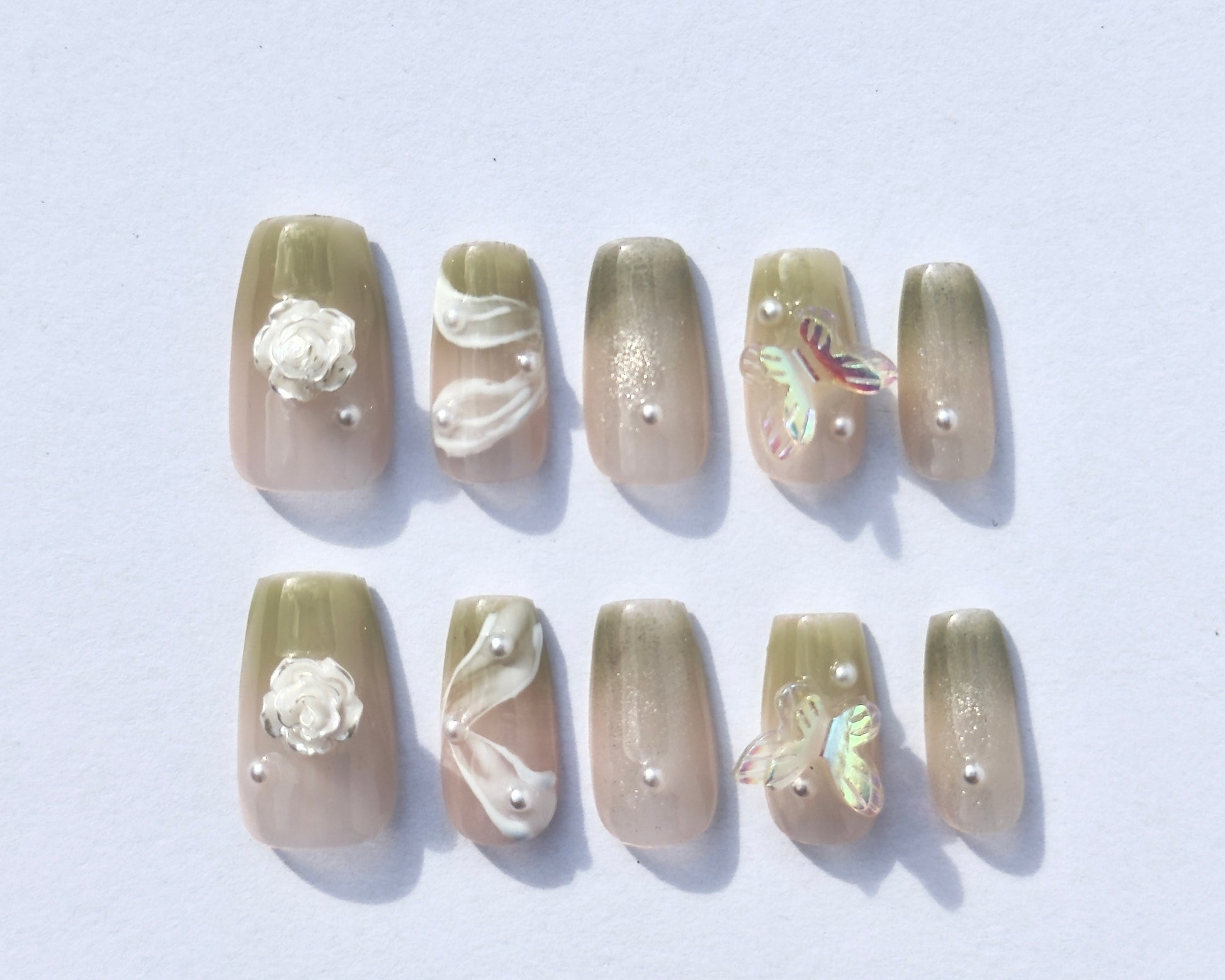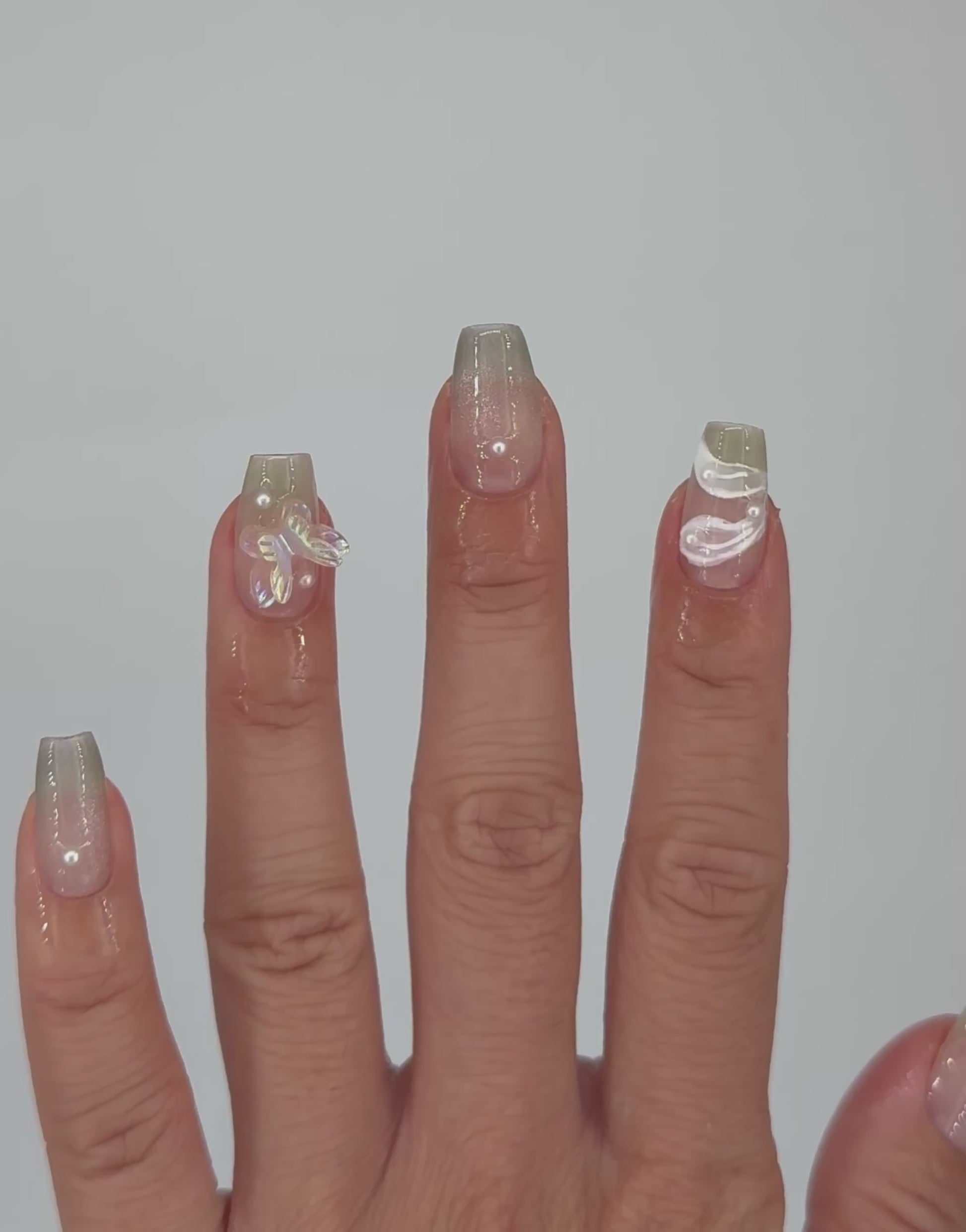Apply glue to your press-ons and your natural nail. Press firmly for 30 seconds per nail with pressure to ensure full adhesion.