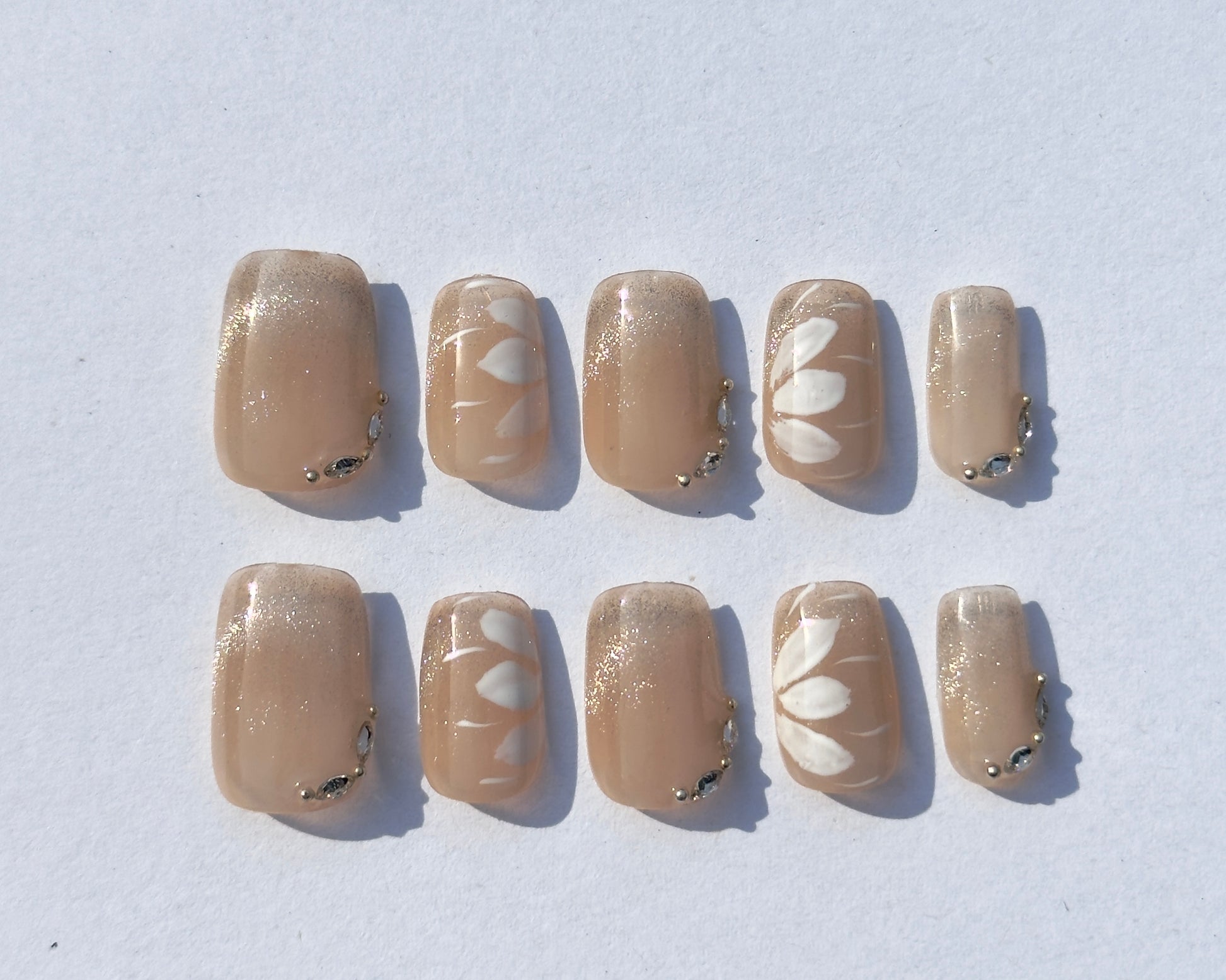 Apply glue to your press-ons and your natural nail. Press firmly for 30 seconds per nail with pressure to ensure full adhesion.