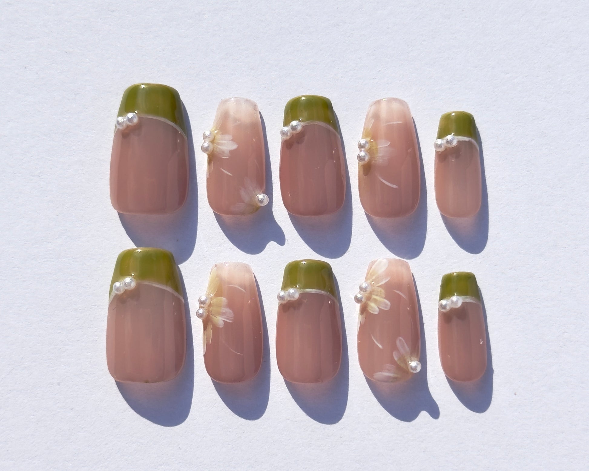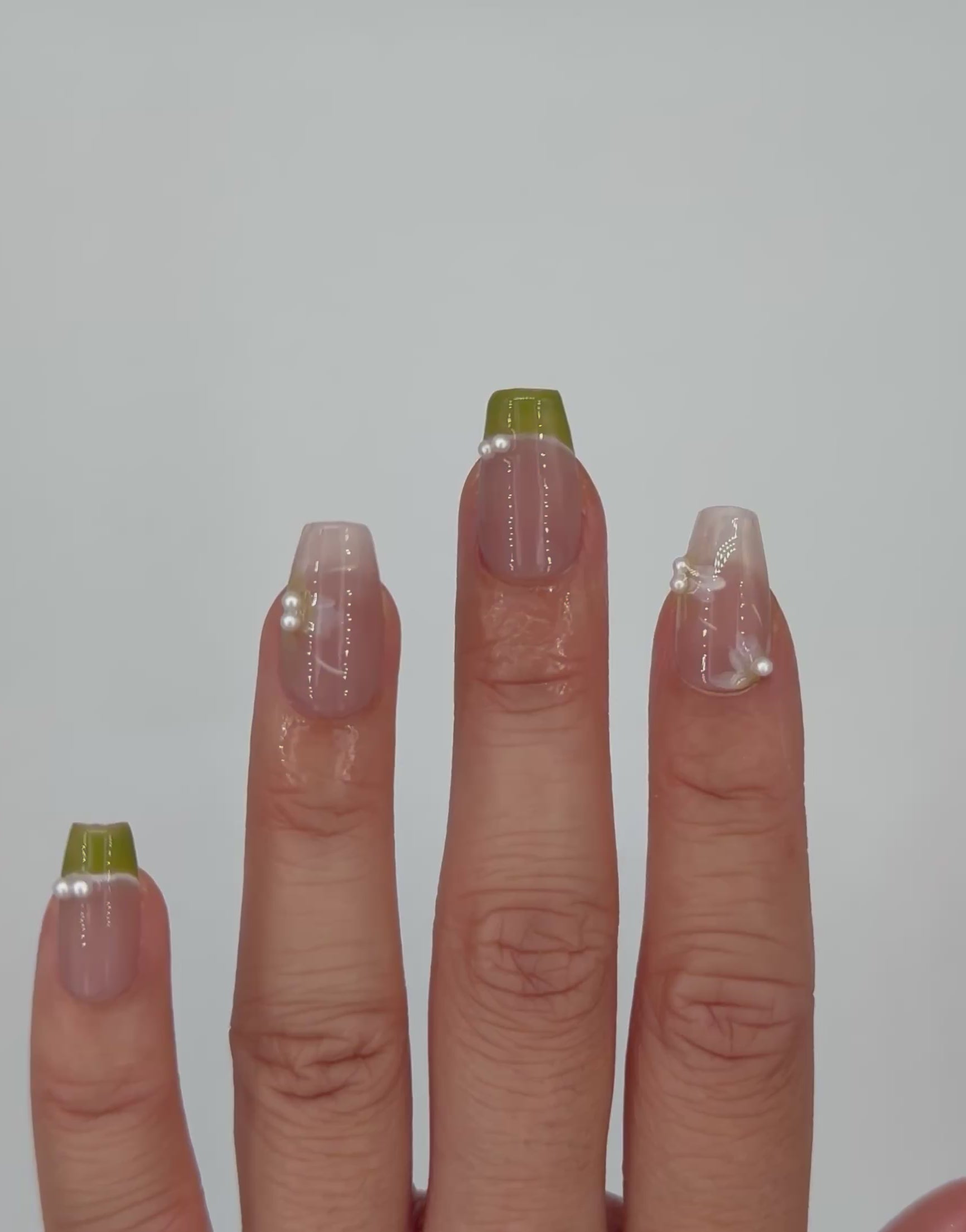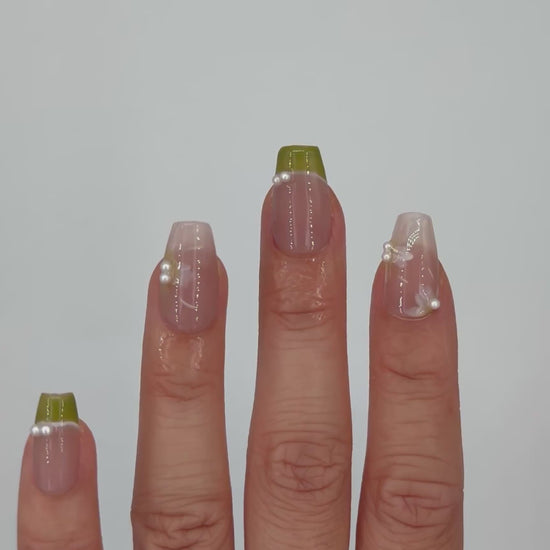 Apply glue to your press-ons and your natural nail. Press firmly for 30 seconds per nail with pressure to ensure full adhesion.