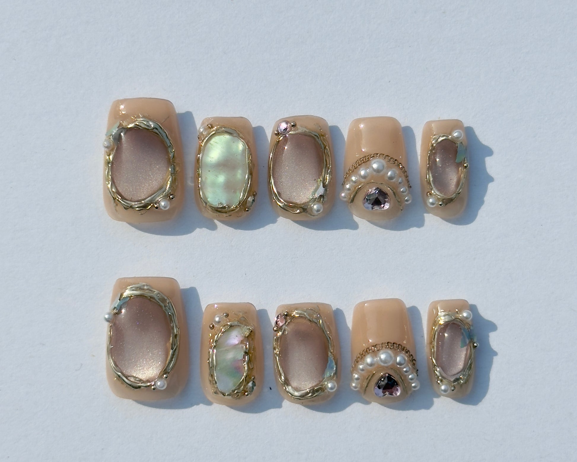 Apply glue to your press-ons and your natural nail. Press firmly for 30 seconds per nail with pressure to ensure full adhesion.