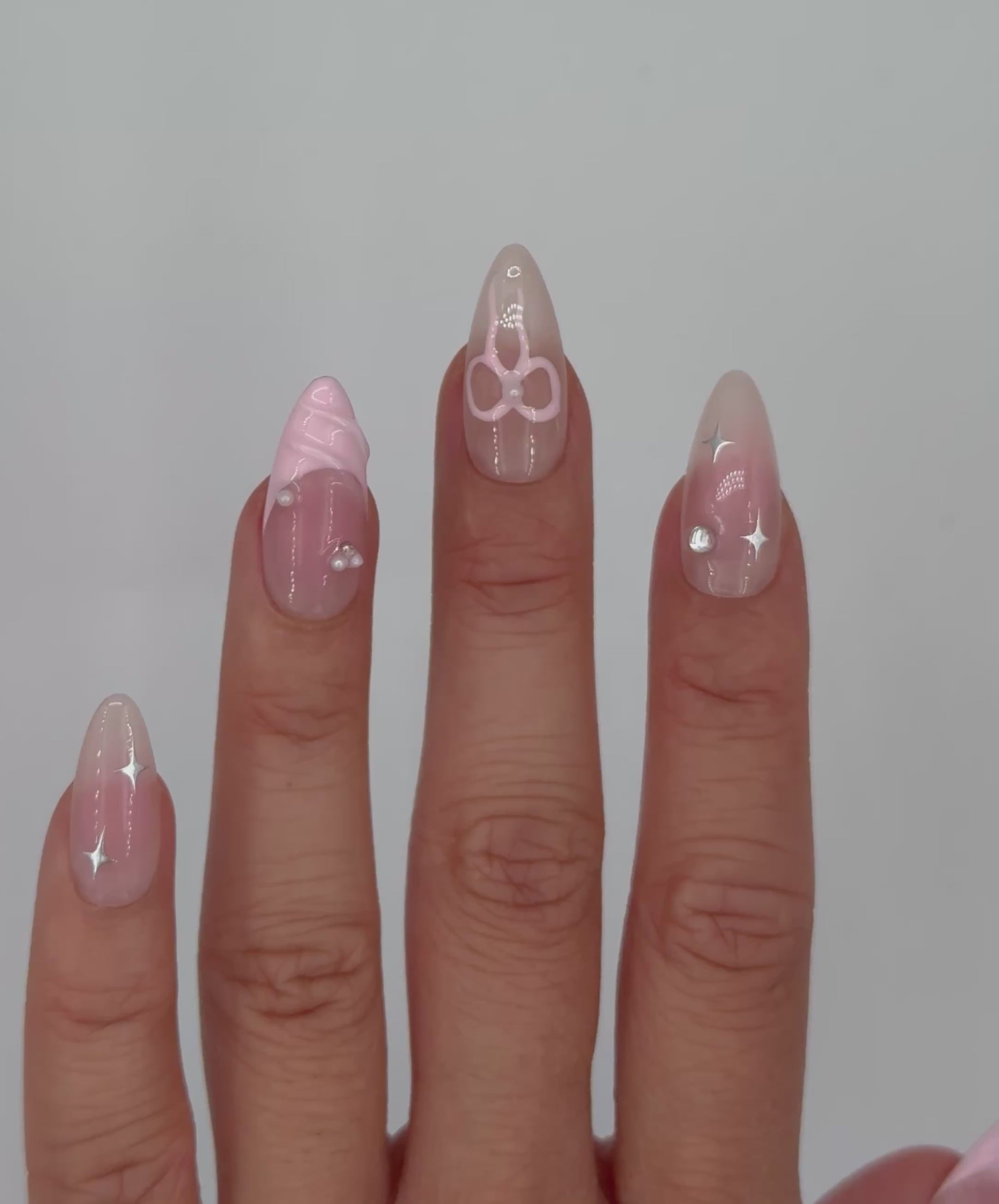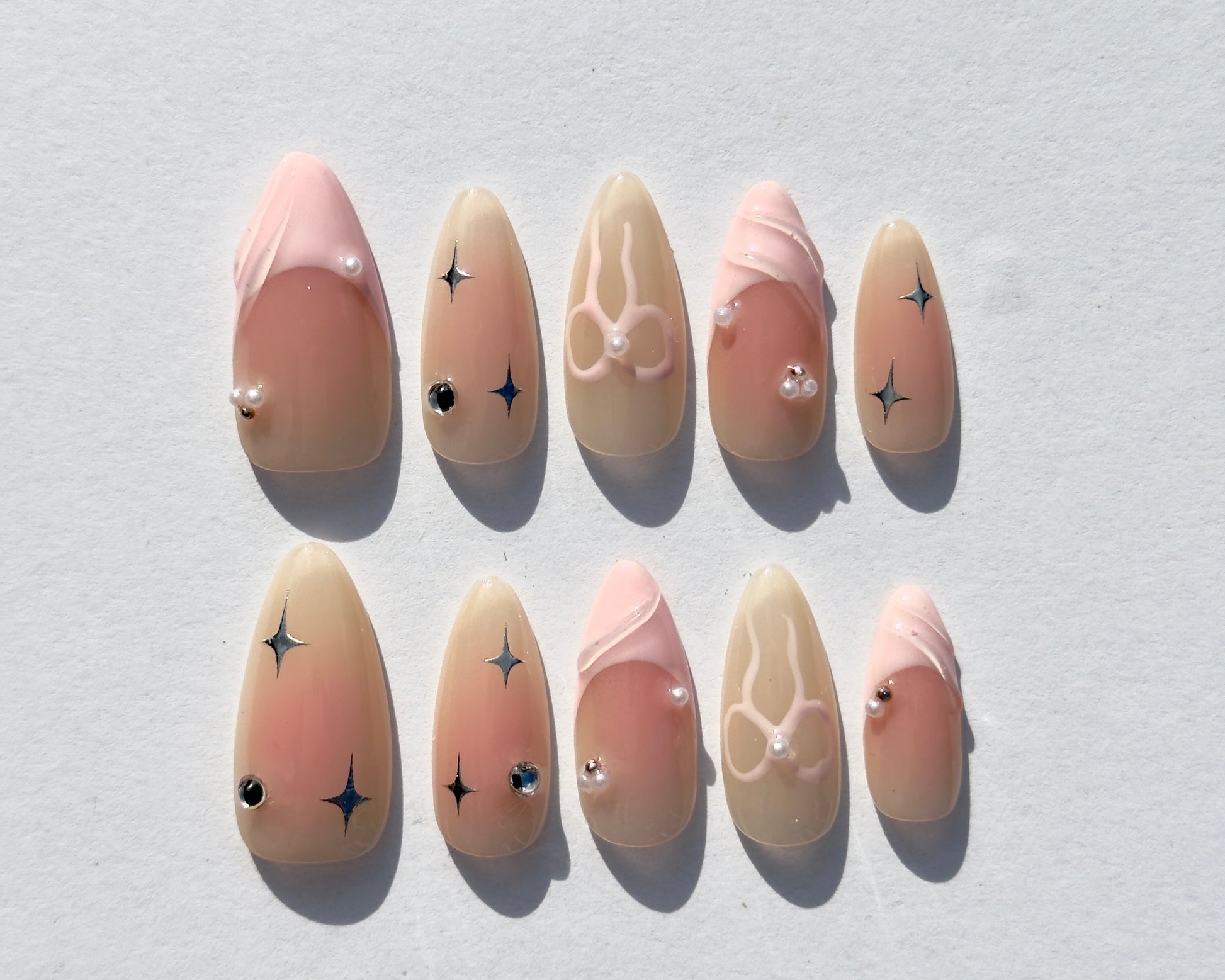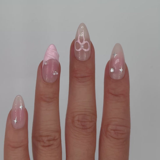 Apply glue to your press-ons and your natural nail. Press firmly for 30 seconds per nail with pressure to ensure full adhesion.