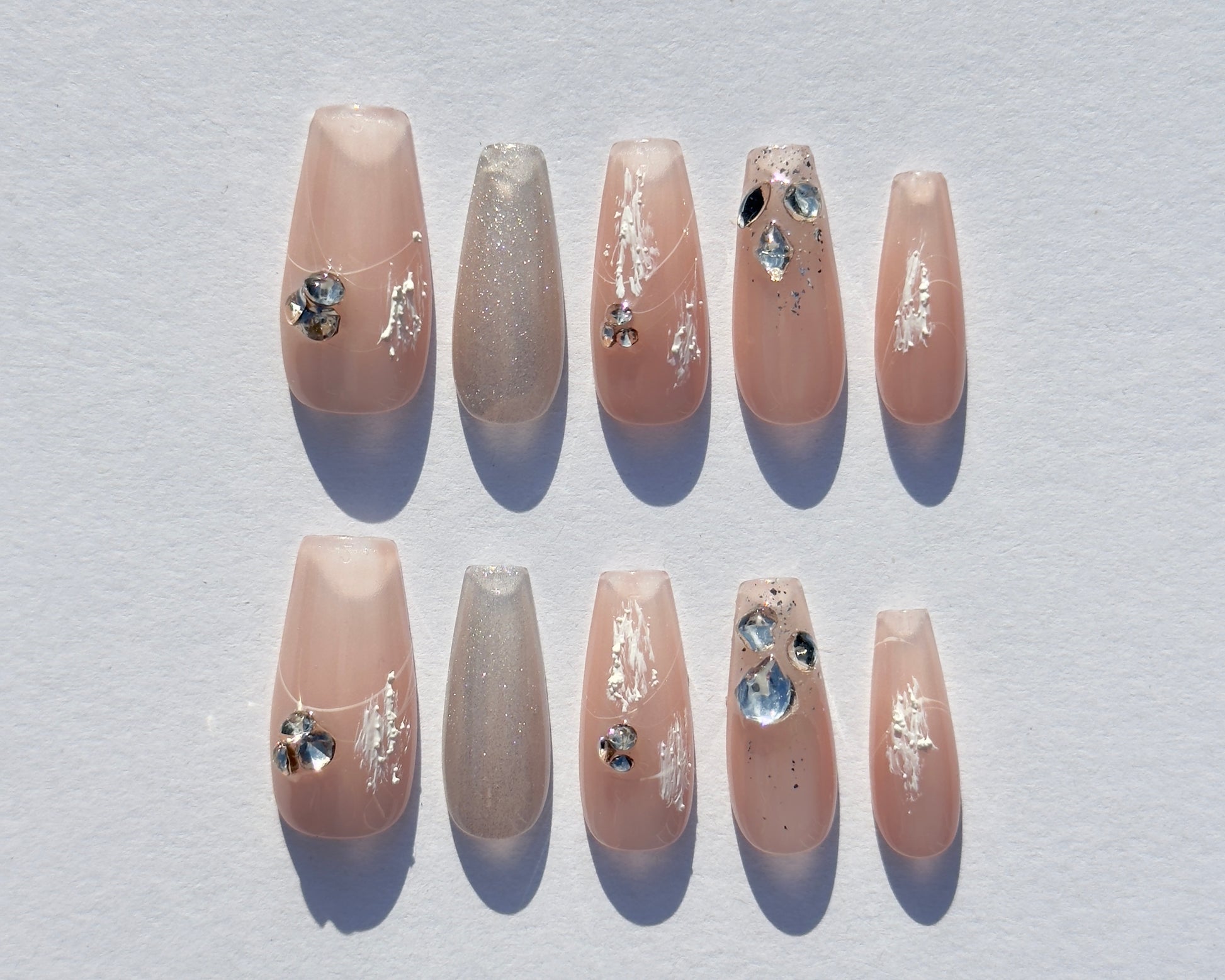 Apply glue to your press-ons and your natural nail. Press firmly for 30 seconds per nail with pressure to ensure full adhesion.