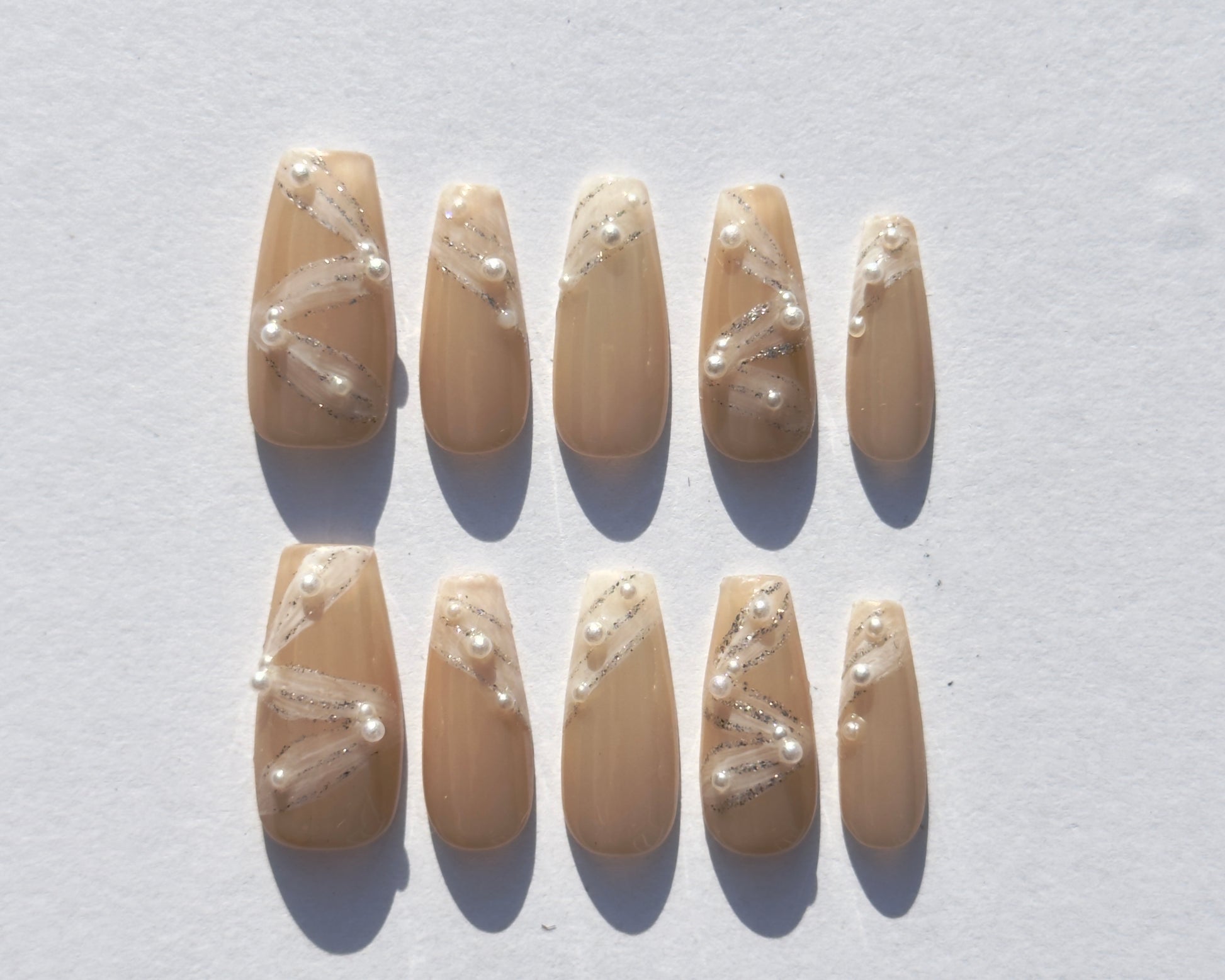 Apply glue to your press-ons and your natural nail. Press firmly for 30 seconds per nail with pressure to ensure full adhesion.