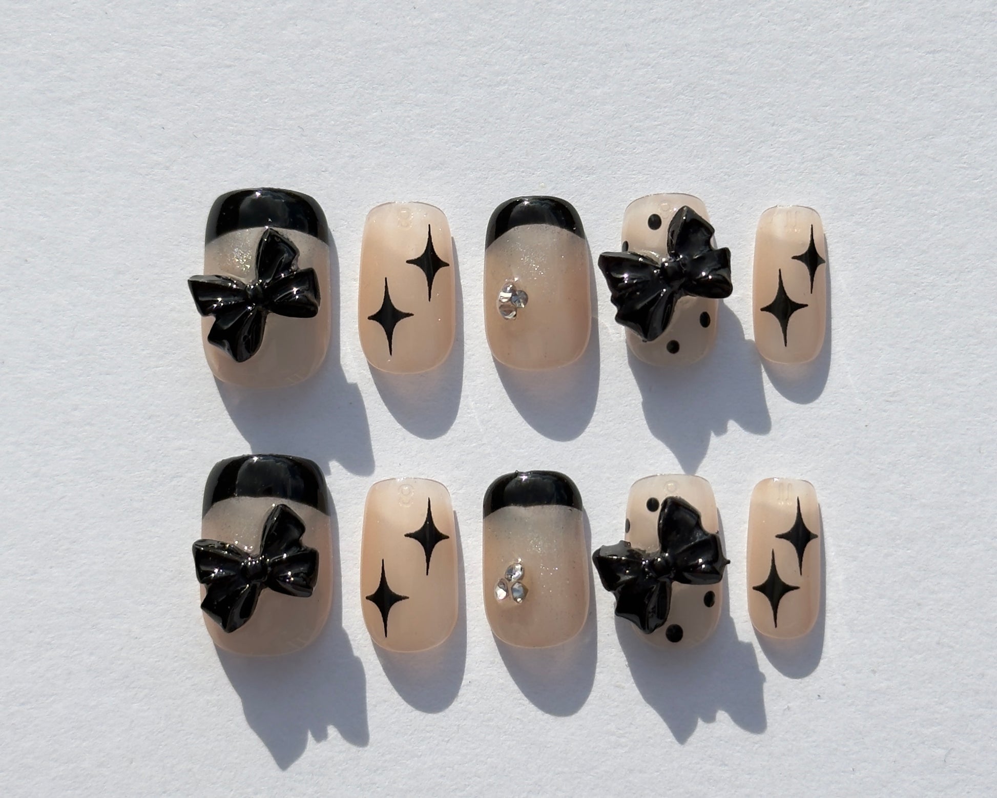 Apply glue to your press-ons and your natural nail. Press firmly for 30 seconds per nail with pressure to ensure full adhesion.