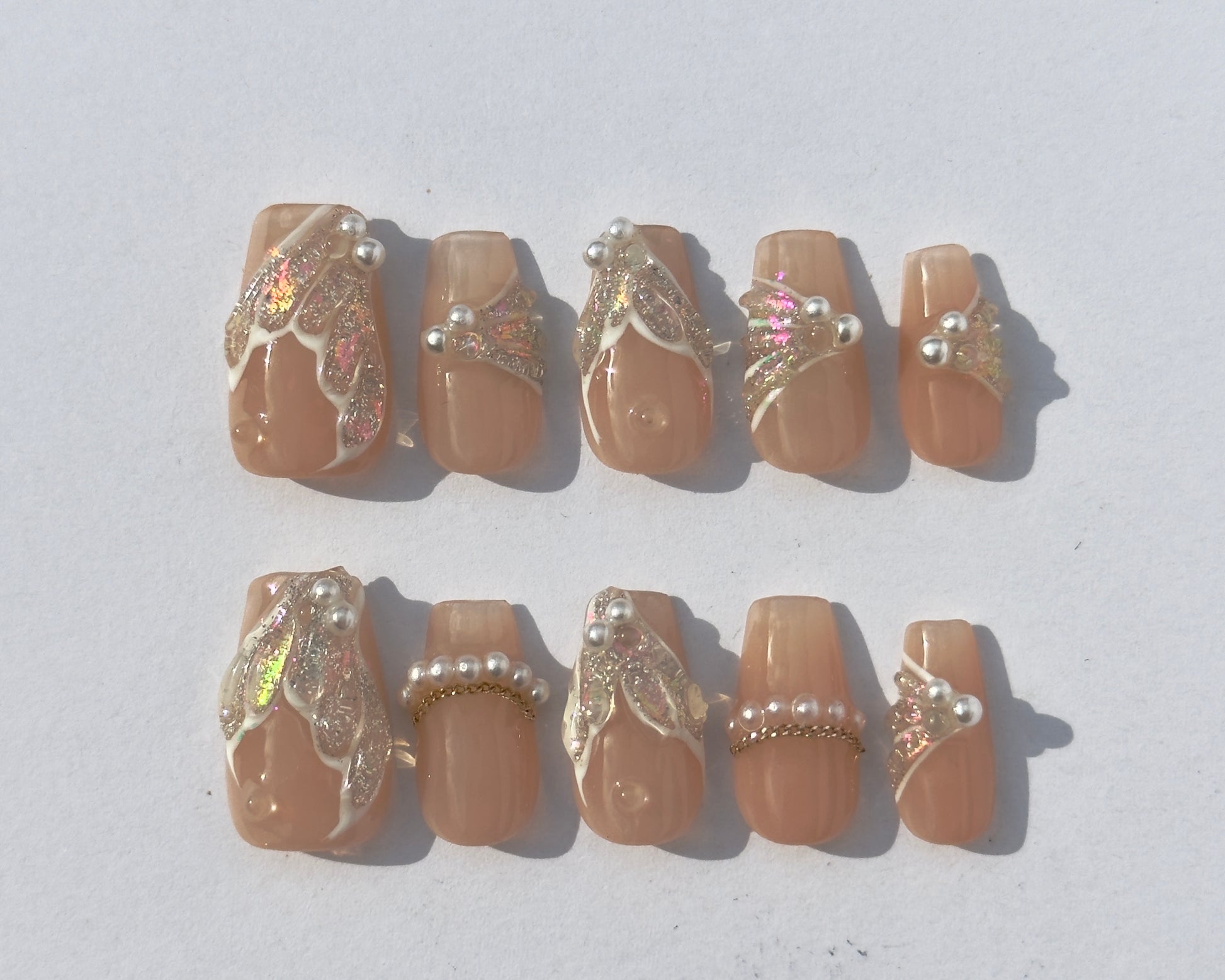Apply glue to your press-ons and your natural nail. Press firmly for 30 seconds per nail with pressure to ensure full adhesion.